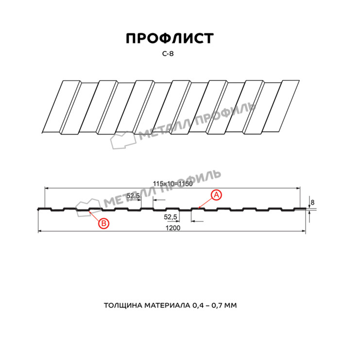 Профлист Металл Профиль С-8 0,7 Полиэстер RAL 7024 Серый графит | A