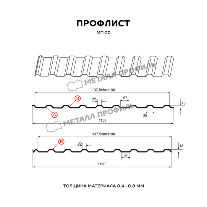 Профилированный лист МП-20x1100-R (ПЭ-01-7024-0,45)