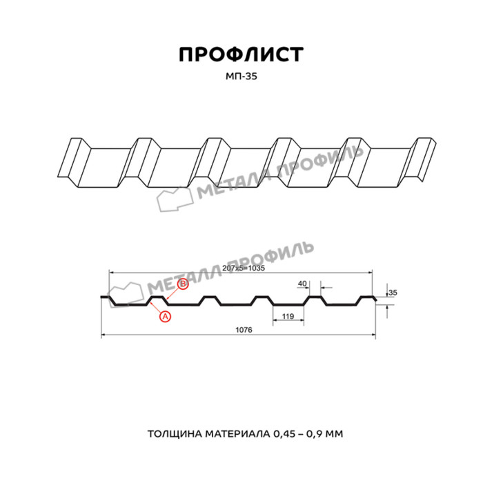 Профилированный лист МП-35х1035-B (ПЭ_Д-01-9003-0,45)
